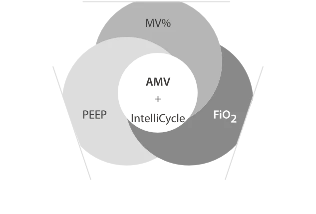 - AMV (адаптивная минутная вентиляция) автоматически регулирует параметры вентиляции в соответствии со статусом пациента