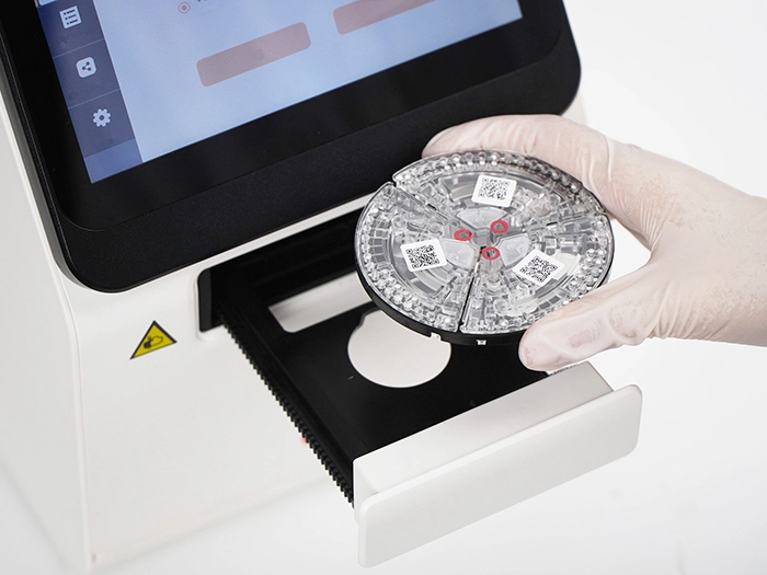Анализатор крови для ветеринарии, основанный на микрофлюидной технологии с инновационным дизайном. Он совместим с двумя типами реактивных роторов: круглыми и секторными, что позволяет гибко настраивать тесты для одного параметра или их комбинации.