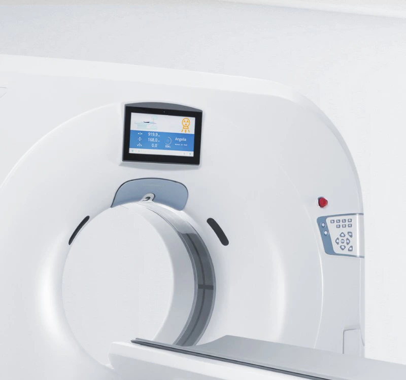 Конструкция равноудаленного детектора размером 32x0,625 мм в сочетании с получением и реконструкцией данных в режиме реального времени с помощью двухканального DAS и технологии переключения рентгеновских трубок позволяют получить действительно высокое разрешение, тонкий срез и быстрое сканирование.