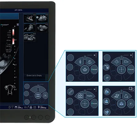Экранная навигация для центрального трекбола, зависящая от режима, повышает ваш рабочий процесс и эффективность. Визуальное сопровождение во время обследования позволяет адаптировать систему и управлять ею в течение нескольких минут.