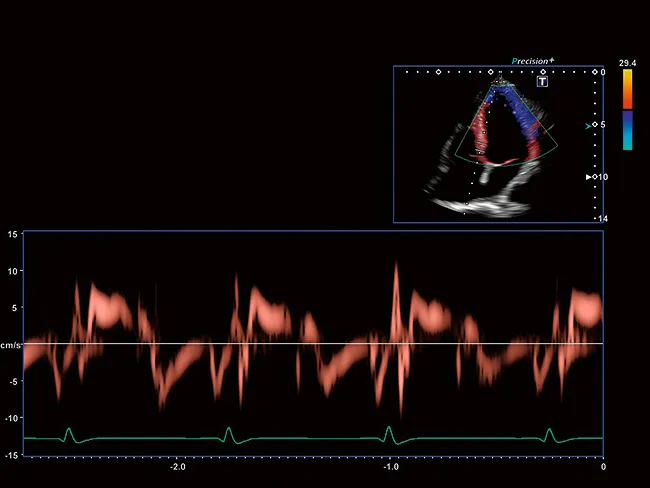 Aplio предоставляет вам тканевые допплеровские изображения с высокой частотой кадров и импульсно-волновые TDI-треки для точного определения времени сердечнолго ритма как в визуальном, так и в количественном формате.
